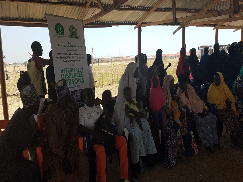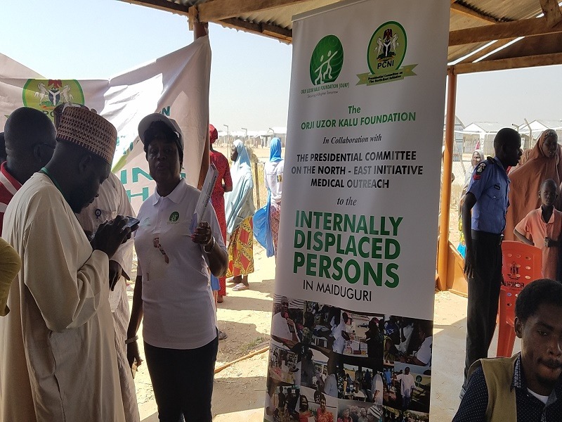 The Orji Uzor Kalu Foundation in collaboration with the Presidential Committee on North-East Initiative (PCNI), recently visited the Bakassi IDP, one of the biggest internally displaced persons’ camps in Borno state on a free medical outreach.